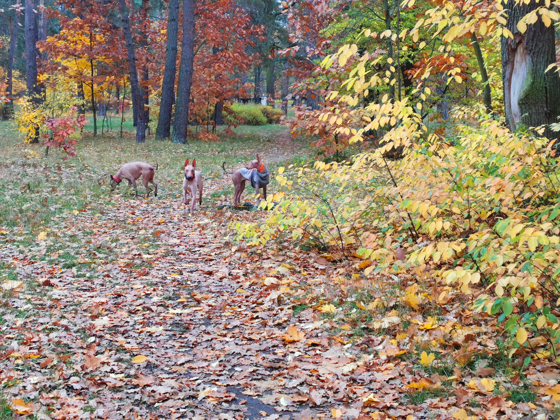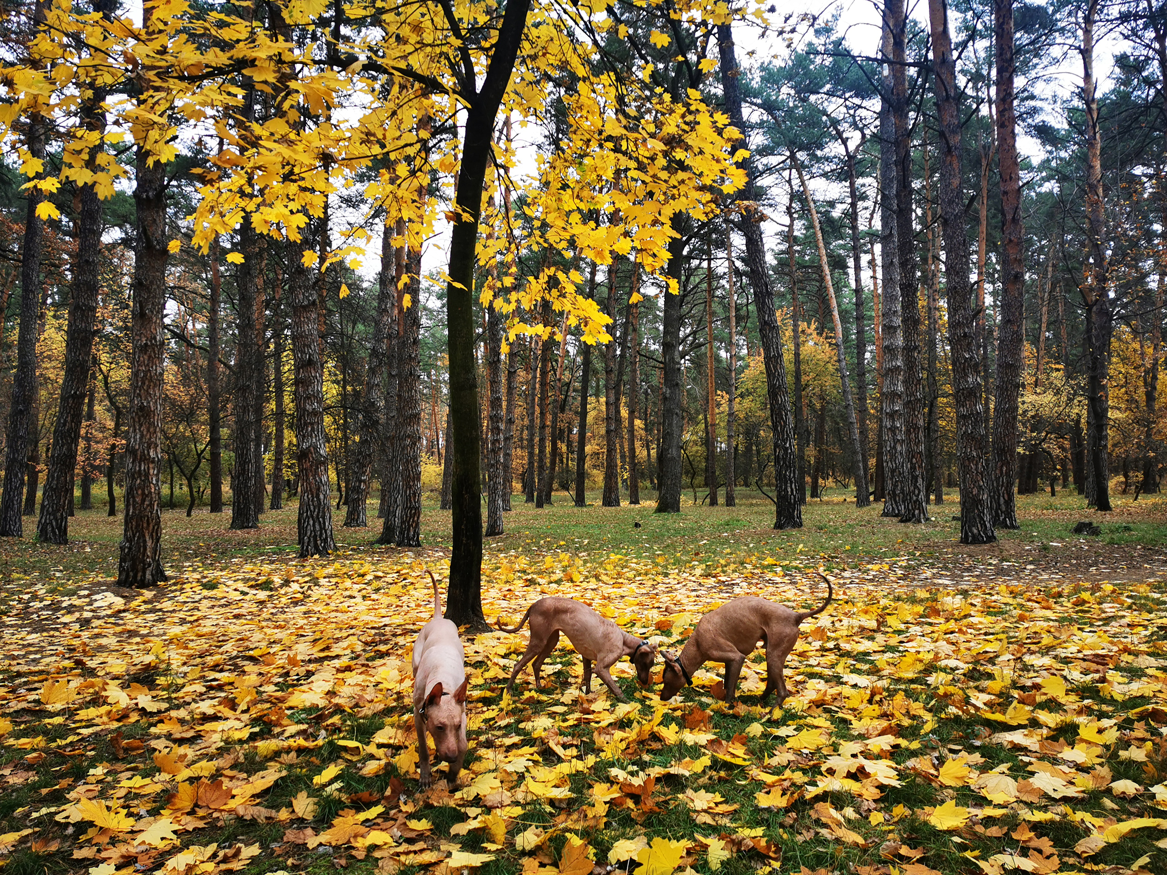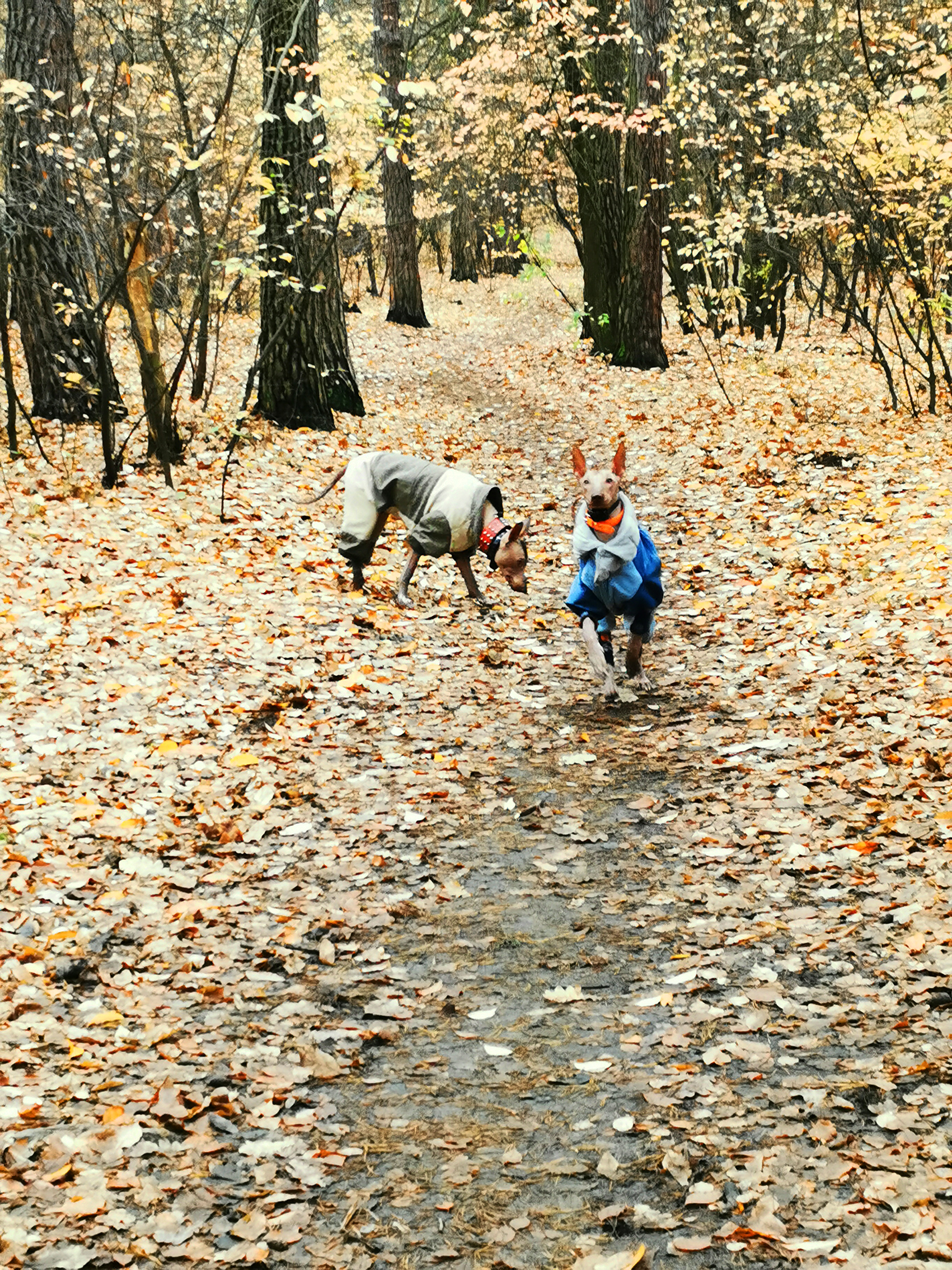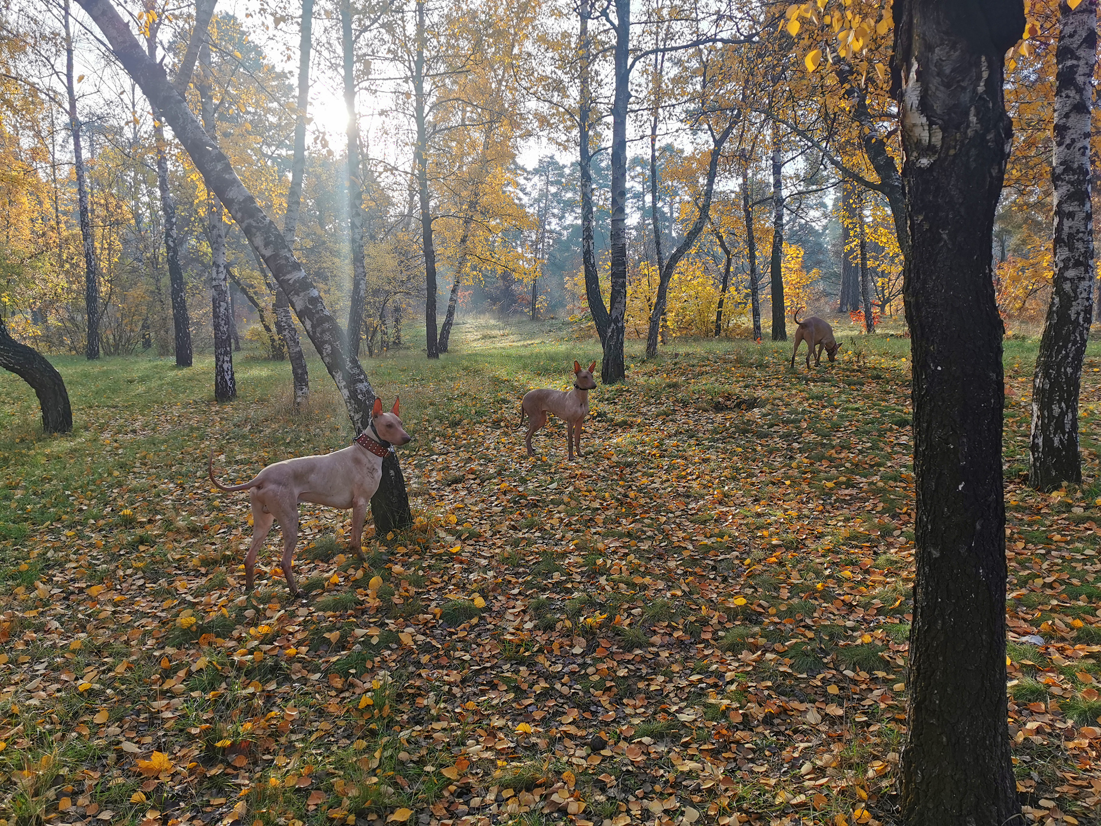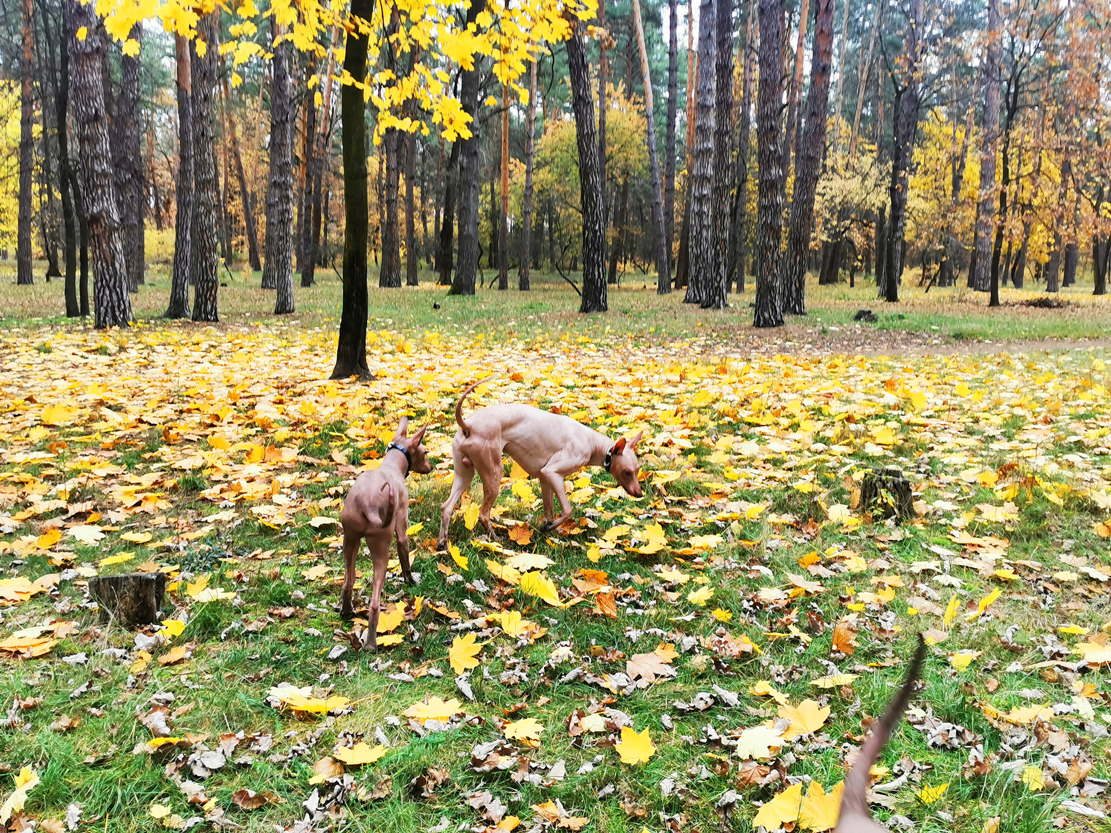 Перуанські голі собаки немовби створені для осінніх пейзажів. Вони ідеально вписуються у золотий фон осіннього листя та трави. Буквально дух захоплює від виду золотої зграї вірінго, яка мчить у вихорі погоні за білкою або зайцем по осінньому лісу. Це чарівно чудово.