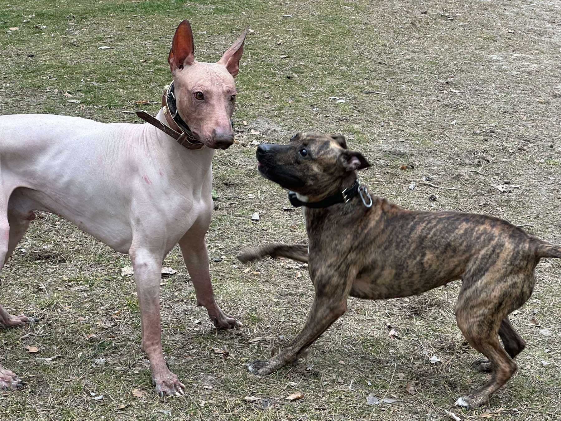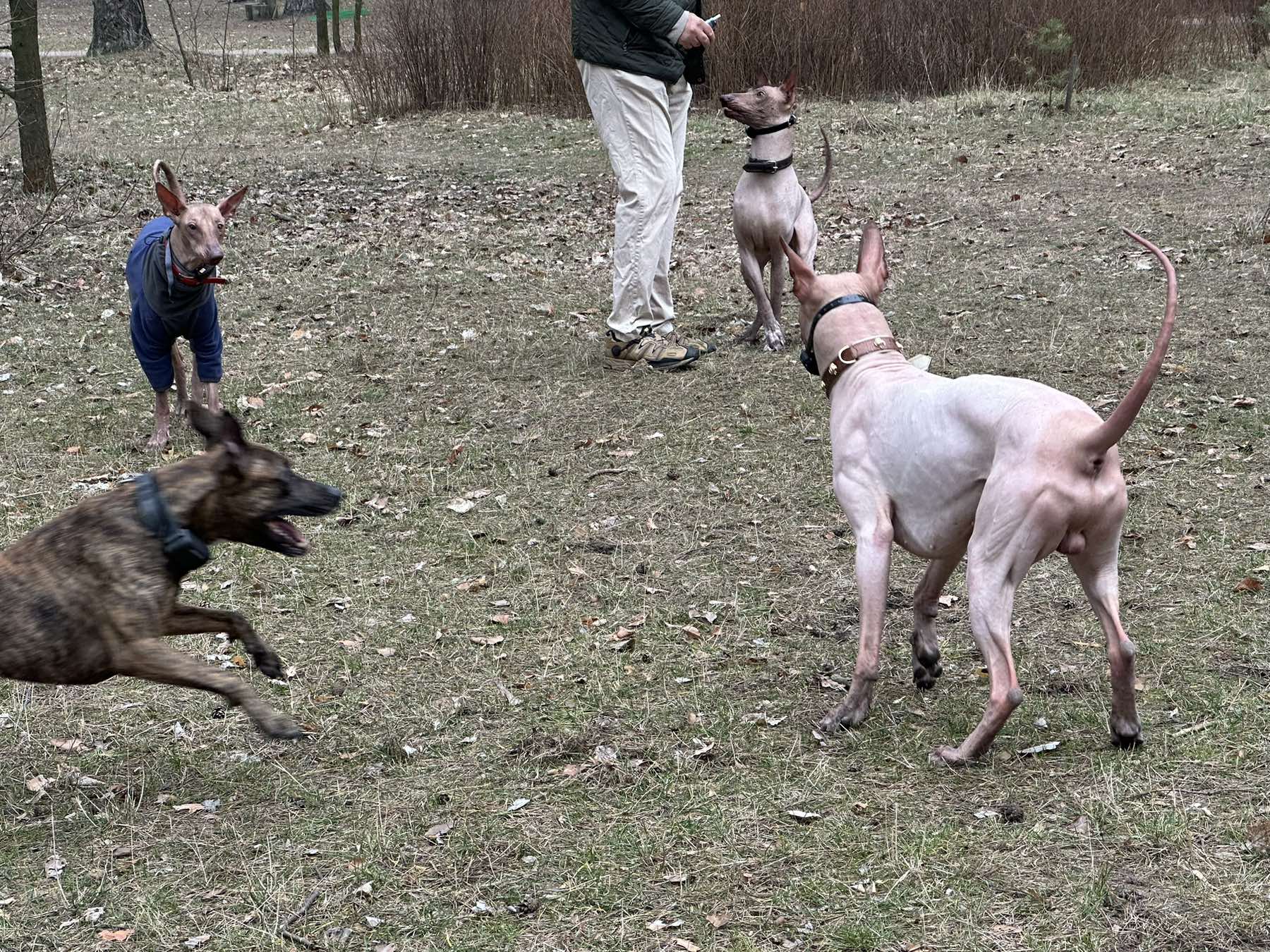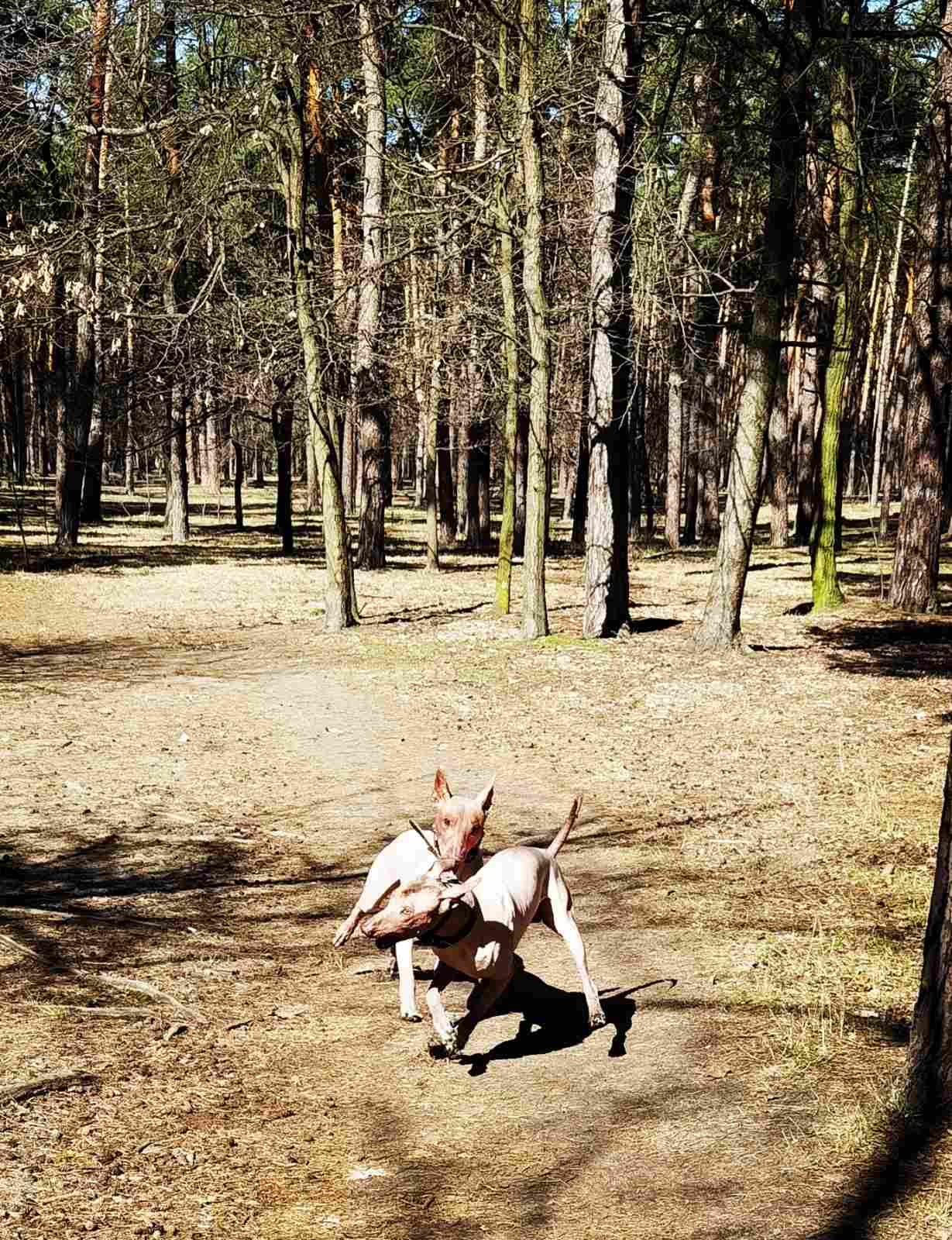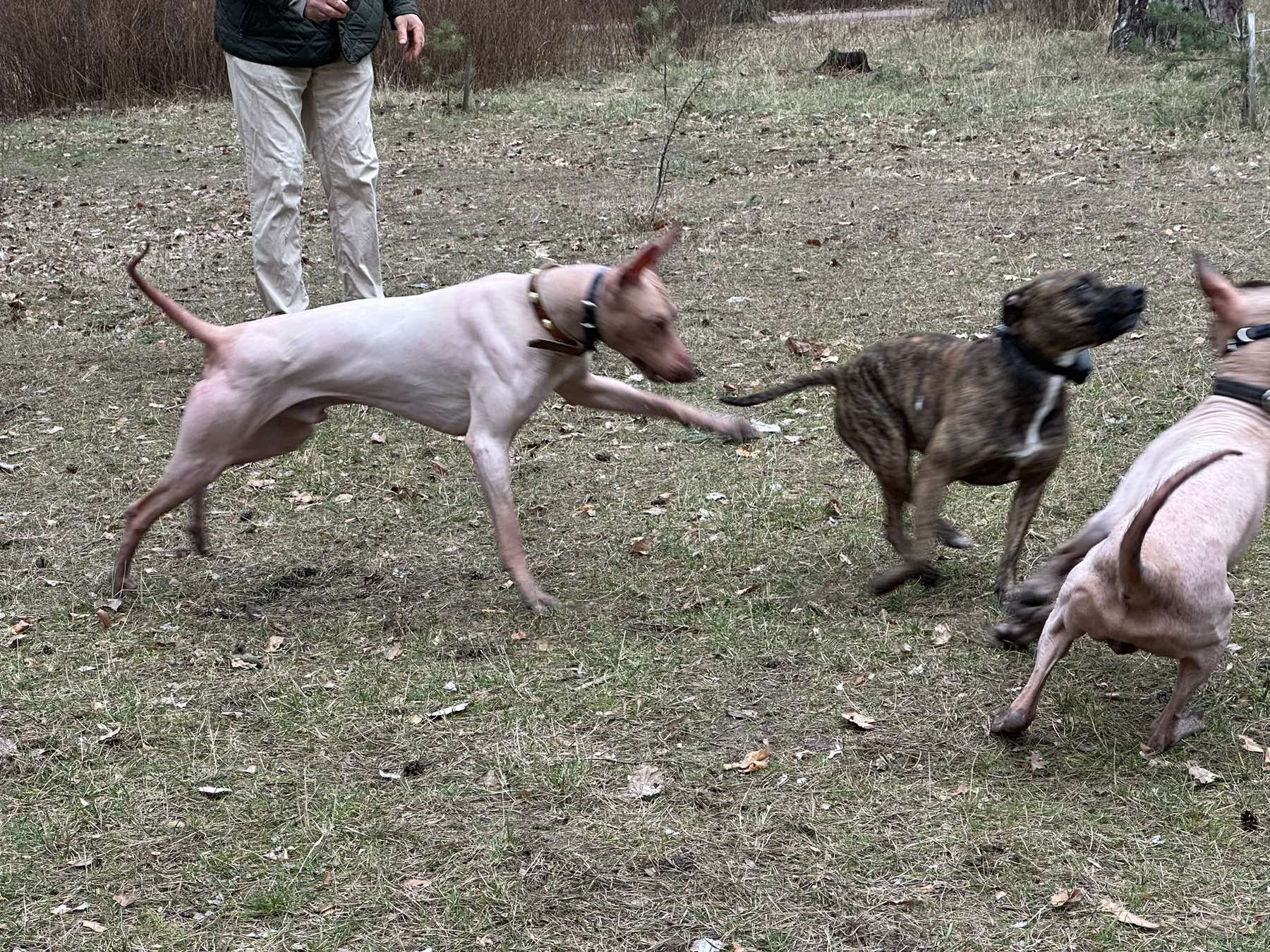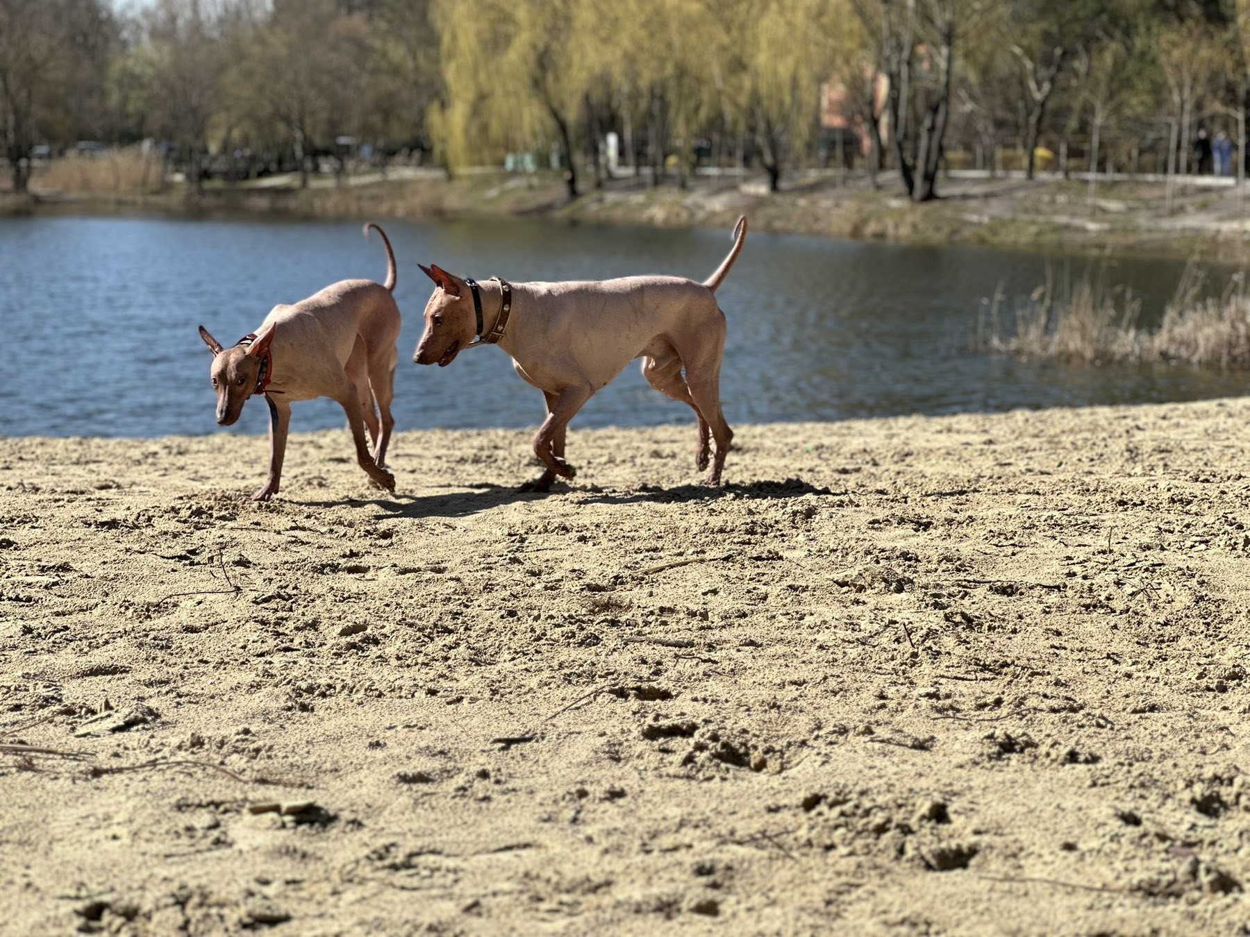 Зима 2024 року була досить сонячна і собаки придбали смішну зимову засмагу, як туристи гірськолижних курортів. Голови, ноги та хвости стали червоно-коричневі, а корпус біло-рожевий. Коли ми їх роздягли весною, це спочатку було дуже помітно і дуже смішно, але вони швидко засмагли під весняним сонцем.