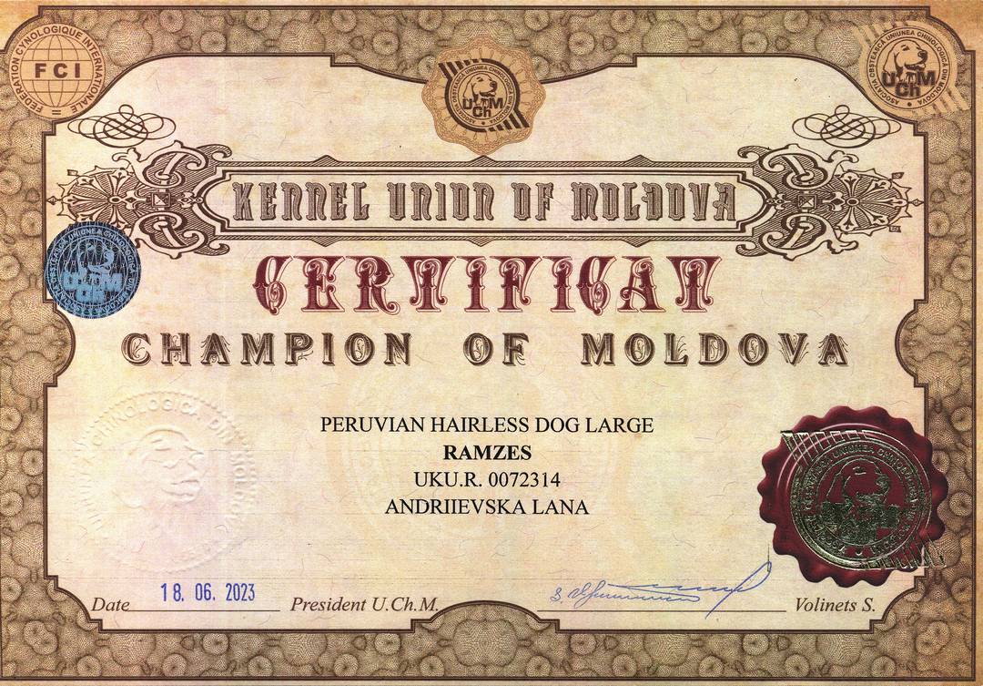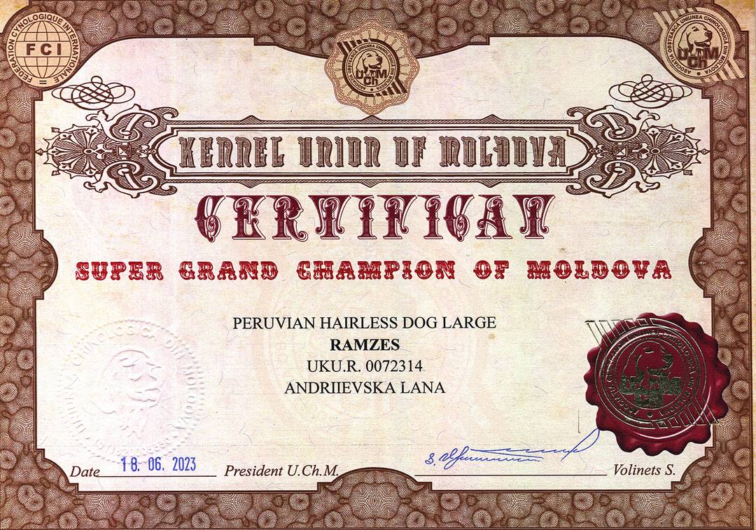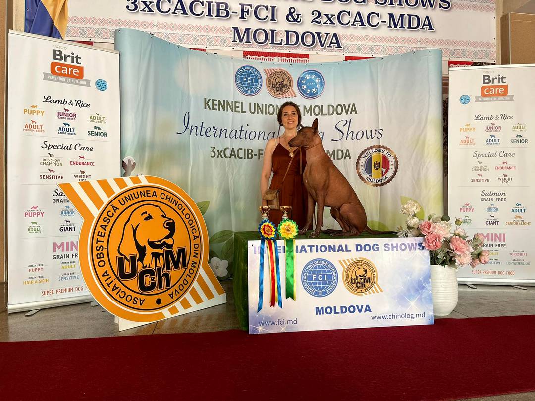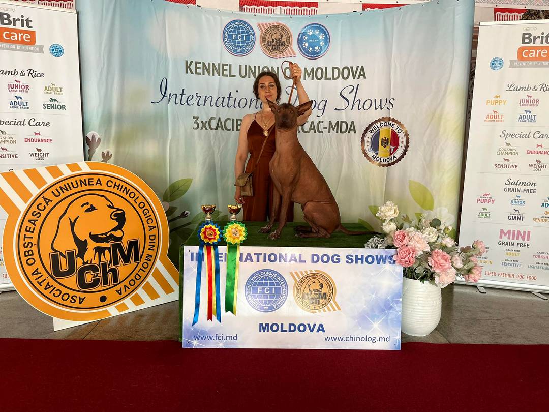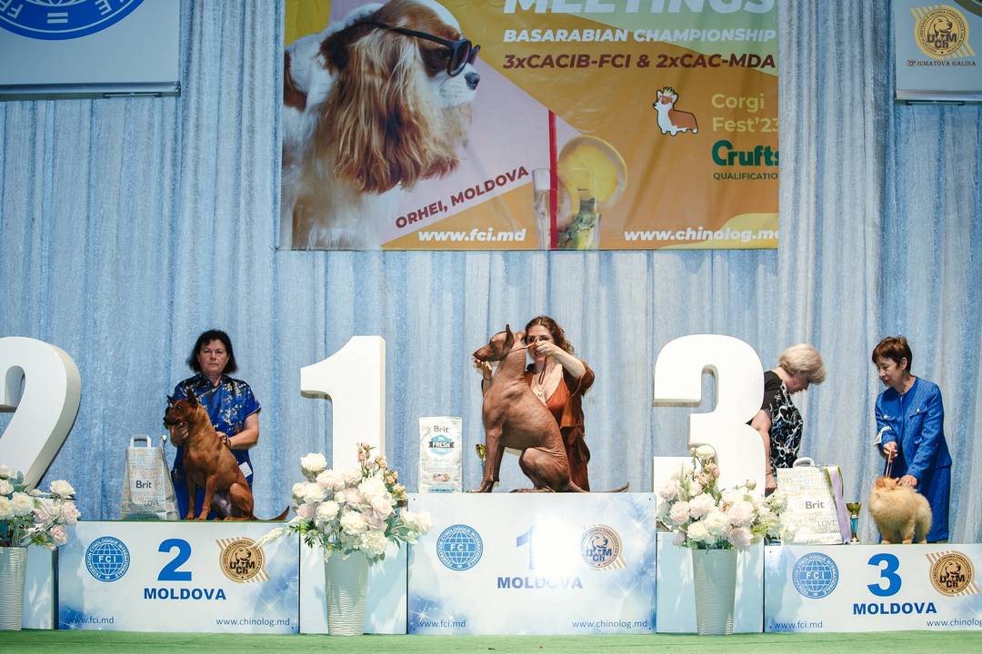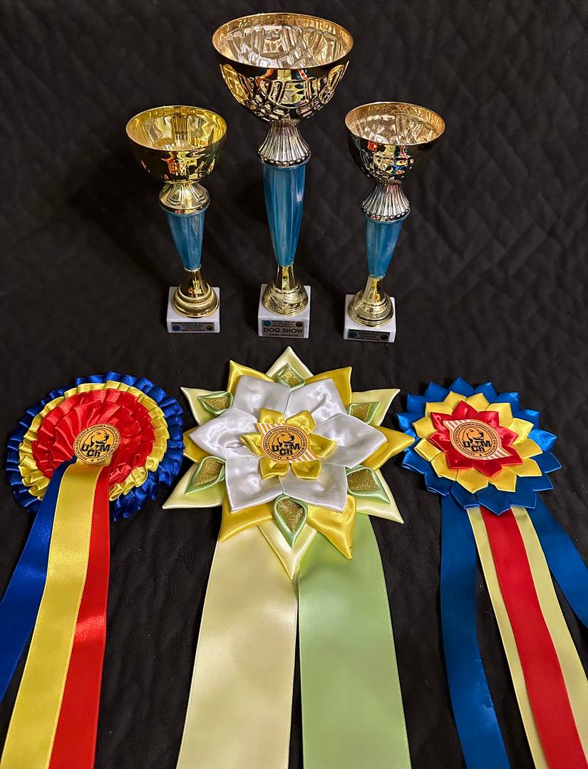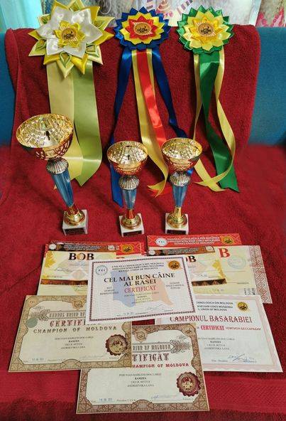 5 х СAC, и 3 x CACIB, и 5 х BOB, BIG-1, 2 х ВIG-3, Crufts Qualification. Наш чубик теперь Чемпион и Супер Гранд Чемпион Молдовы, Чемпион Бессарабии и ВВВ.